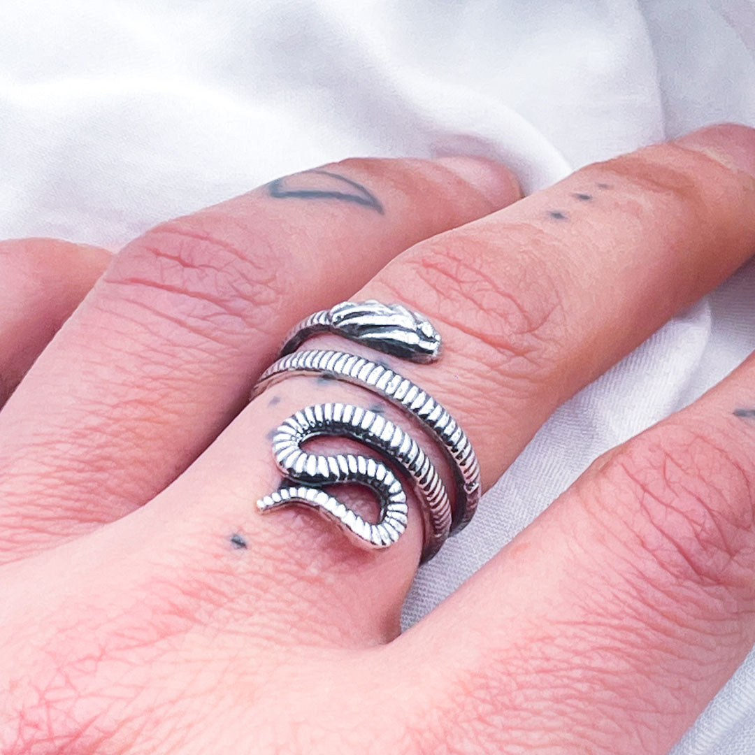 Anillo Snake , para todos los amantes de las serpientes. Este anillo audaz, es ajustable, perfecto para hombres y mujeres, ofreciendo comodidad y versatilidad. Elaborado en plata 950, es el accesorio perfecto para llevar en cualquier ocasión